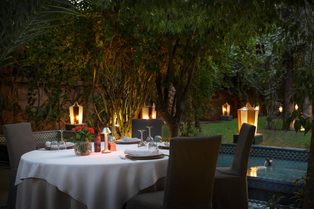 Bénéficiez d'un traitement VIP grâce au service exclusif de l'établissement Dar Rhizlane, Palais Table d'hôtes & SPAEntouré par un vaste jardin avec piscine extérieure, l'Hôtel Dar Rhizlane est situé dans le quartier de l'Hivernage, à Marrakech, à 2 km de la place Jamaâ El Fna. Il possède un spa. Décorées dans un style marocain, les chambres climatisées disposent d'une terrasse donnant sur le jardin. Elles sont également équipées d'une connexion Wi-Fi gratuite, d'une télévision par satellite à écran plat et d'une salle de bains privative. Les restaurants sur place vous proposeront des plats marocains et internationaux servis dans la salle à manger traditionnelle ou sur la terrasse bordant la piscine. Vous aurez en outre l'occasion de participer à des ateliers pour apprendre à cuisiner des recettes locales. L'Hôtel Dar Rhizlane est situé en face des jardins de la Ménara et à 3 km de ceux de l'Agdal. Enfin, la gare ONCF de Marrakech est implantée à 2 km, tandis que l'aéroport de Marrakech-Ménara est à 2,7 km.
