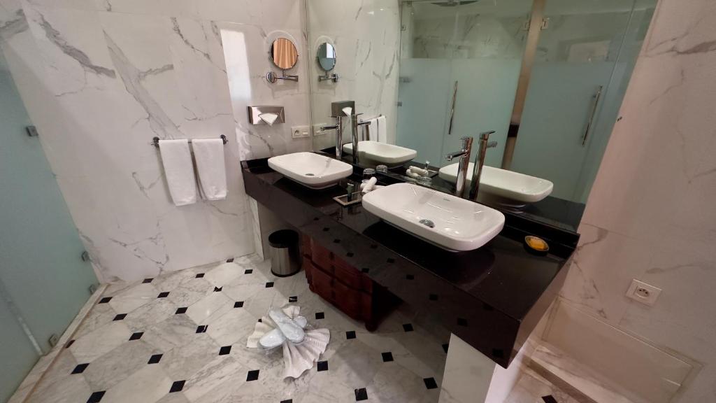 Bénéficiez d'un traitement VIP grâce au service exclusif de l'établissement Sillage Palace Sky & SpaL’établissement Sillage Palace Sky & Spa se situe à Marrakech, à 1 km de ce lieu d’intérêt : Place Jemaa el-Fna. Il possède une piscine extérieure, un jardin, un salon commun et un parking privé gratuit. Il possède un service de concierge et une terrasse. L’établissement comprend une réception ouverte 24h/24, des transferts aéroport, un service d'étage et une connexion Wi-Fi gratuite dans l’ensemble de ses locaux. Les hébergements comprennent la climatisation, un bureau, une machine à café, un réfrigérateur, un minibar, un coffre-fort, une télévision à écran plat ainsi qu’une salle de bains privative dotée d’une douche. Vous bénéficierez d’une bouilloire. Certains hébergements comprennent également un balcon. Des serviettes et du linge de lit sont fournis. Un petit-déjeuner buffet, continental et italien est servi sur place. Sur place, Vous pourrez savourer un repas dans un restaurant qui propose des plats marocains, ainsi que des options végétariennes, sans lactose et halal. La région est prisée des amateurs de ski et de vélo, et cet hôtel 5 étoiles assure un service de location de vélos. Vous séjournerez à proximité de ces lieux d’intérêt : Mosquée Koutoubia, Palais de la Bahia et Musée de Mouassine. L'aéroport le plus proche (Aéroport Marrakech-Ménara) est à 3 km.